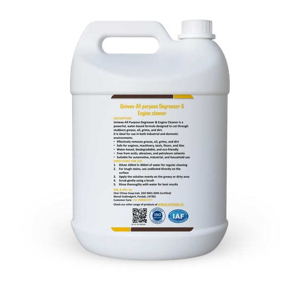 Uniwax-All Purpose Degreaser & Engine Cleaner is a powerful, water-based formula designed to cut through stubborn grease, oil, grime, and dirt.