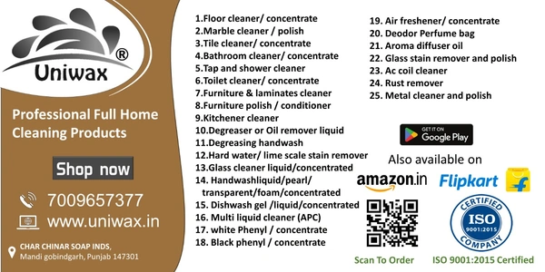 Uniwax Aluminium Cleaner and Brightener is a powerful, fast-acting formula designed to remove oxidation, cement stains, dust, grease, and heavy dirt from all types of aluminium surfaces. It not only cleans effectively but also restores the natural shine, leaving a bright and polished finish.