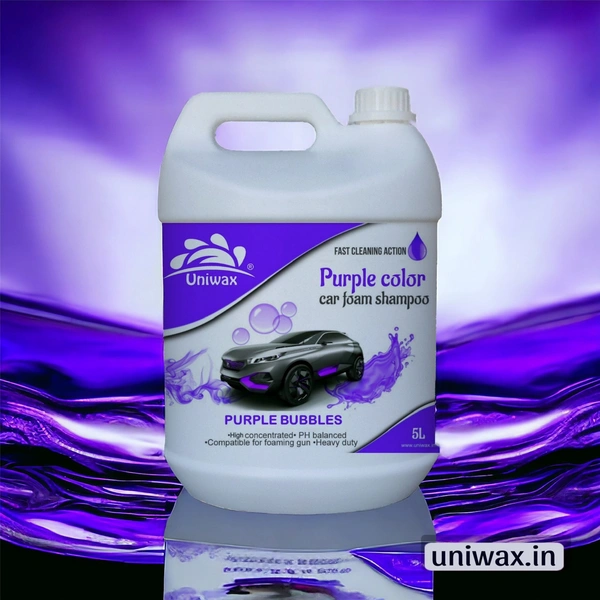 uniwax color car Foam shampoo is super dense clinging Purple foam to soften surface dirt. It has water softer quality which gives the best result on a car. It saves time and effort and creates thick Purple foam. Great Fragrance and Neutral Ph. Product is extremely effective with hard water. Safe on hands also helps in cleaning spots from chrome and glass too. it removes Tough Dirt & Road Grime from your Car or Bike. It is work in the foaming spray gun, jet foaming machine, and foaming jet cylinder
