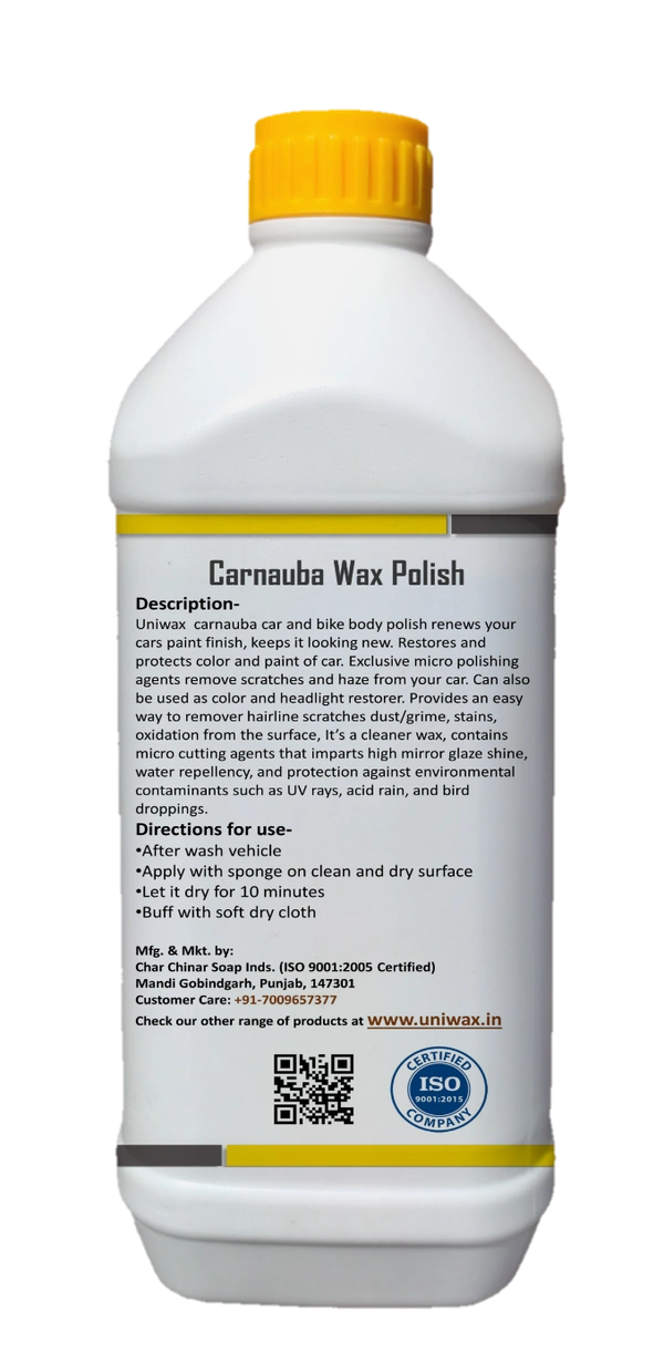 Polishing and Waxing: uniwax car polishes have hybrid properties in that they not only polish the surface to remove imperfections but also contain wax or other protective agents that leave a glossy finish and provide some level of protection to the paint.