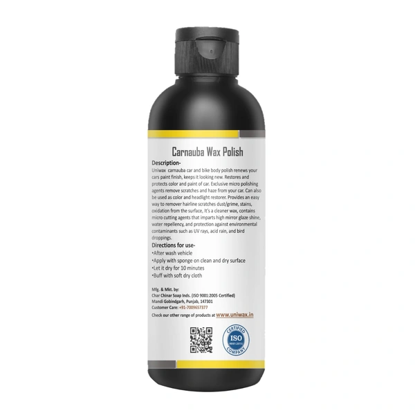 - Uniwax Carnauba car and bike body polish renews your car's paint finish, keep it looking new.