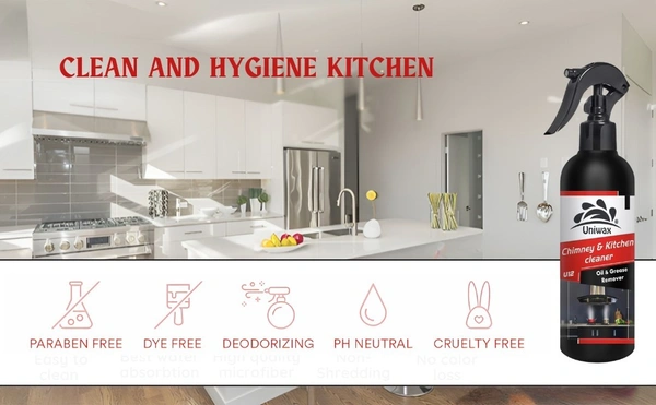 - Uniwax contains potent degreasers that can easily break down and remove tough grease, oil, and soot. This makes it ideal for cleaning kitchen chimneys, where grime tends to accumulate inside filters and on the chimney walls.