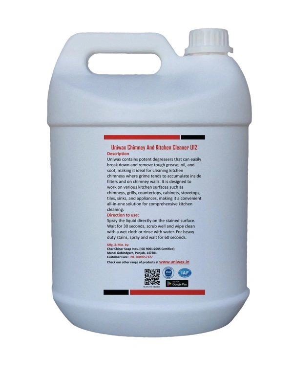 - Uniwax contains potent degreasers that can easily break down and remove tough grease, oil, and soot. This makes it ideal for cleaning kitchen chimneys, where grime tends to accumulate inside filters and on the chimney walls.