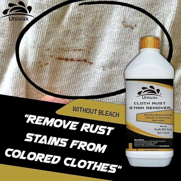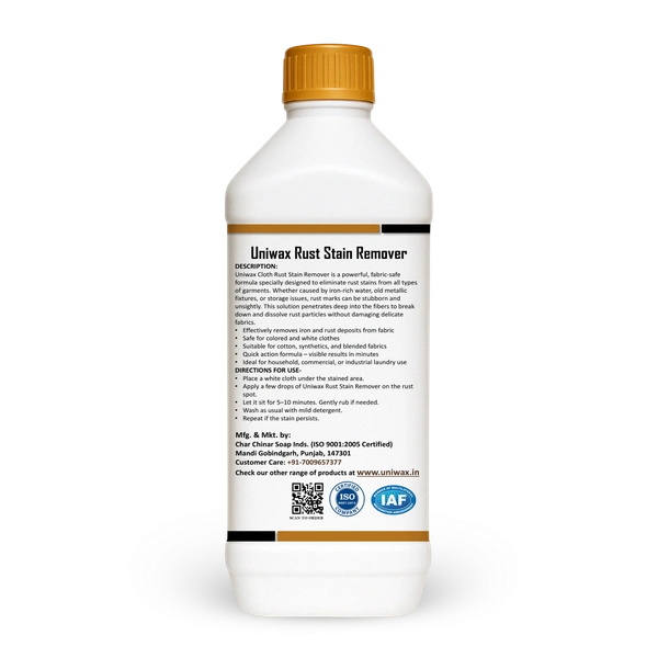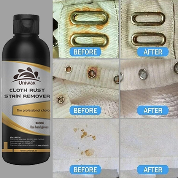 Uniwax Cloth Rust Stain Remover is a powerful, fabric-safe formula specially designed to eliminate rust stains from all types of garments. Whether caused by iron-rich water, old metallic fixtures, or storage issues, rust marks can be stubborn and unsightly. This solution penetrates deep into the fibers to break down and dissolve rust particles without damaging delicate fabrics.