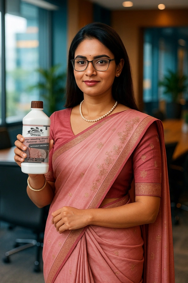 Uniwax UL01 Color Bleeding Stain Remover is a specialized formulation developed to remove color run or bleeding stains from clothes caused during incorrect washing or dye transfer. Ideal for colored garments, sarees, kurtas, and delicate fabrics, this solution gently lifts unwanted dye stains without affecting the original fabric color or texture.