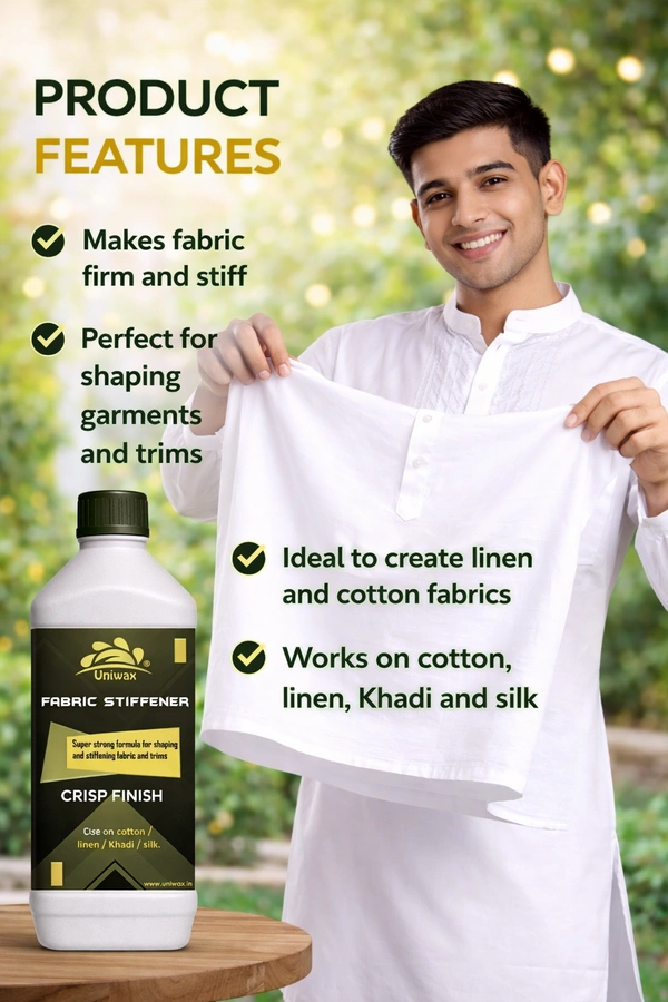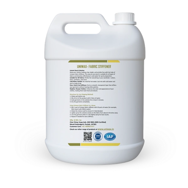 Make your clothes stiff, bright, and wrinkle-free easily with the help of this fabric stiffener from uniwax. Its formula is suitable for all fabrics and it can dissolve in cold water.