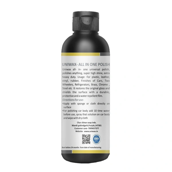 Uniwax Multiple Polish is an advanced all-in-one polishing solution designed to restore, protect, and enhance the shine of your vehicle’s paint, plastic, rubber, and trims. Its unique formula works as a color restorer, reviving dull and faded surfaces while leaving behind a protective layer that resists dust, UV rays, and water marks. Whether it’s your car’s body, bumpers, dashboard, or rubber linings, this versatile polish ensures a showroom-like finish every time.