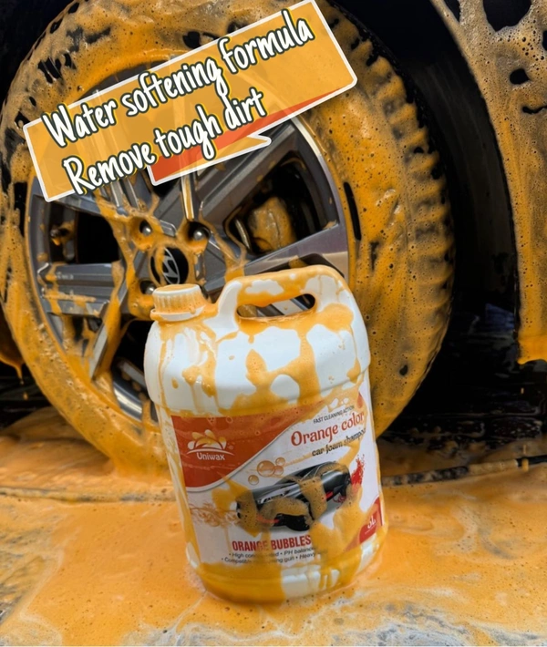 Uniwax Color Car Foam Shampoo creates a super-dense, clinging orange foam that effectively softens surface dirt. Its water-softening properties enhance cleaning performance, making it easier to remove grime while saving time and effort.