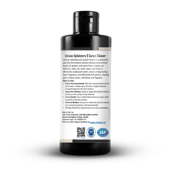 Introducing the UniWax Upholstery Cleaner, your ultimate solution for maintaining the pristine condition of your car interiors, sofas, and carpets. This versatile cleaner is expertly formulated to tackle the toughest stains and odors, ensuring your spaces not only look clean but also feel and smell refreshingly new.