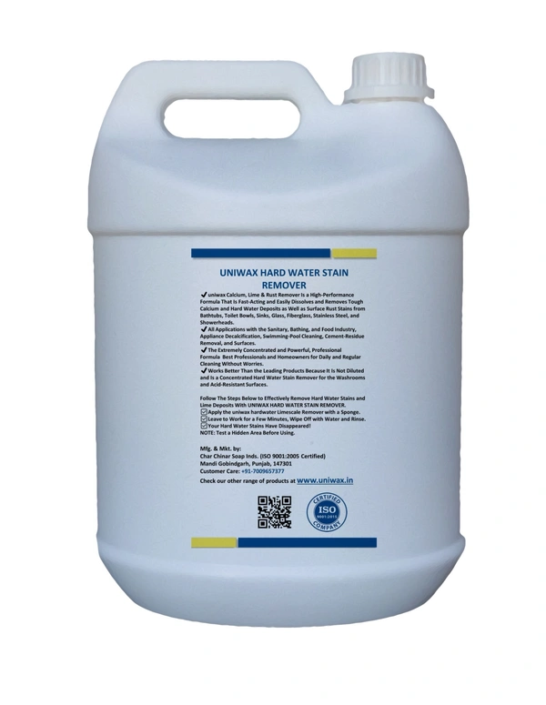 - ✔️uniwax Calcium, Lime & Rust Remover Is a High-Performance Formula That Is Fast-Acting and Easily Dissolves and Removes Tough Calcium and Hard Water Deposits as Well as Surface Rust Stains from Bathtubs, Toilet Bowls, Sinks, Glass, Fiberglass, Stainless Steel, and Showerheads.